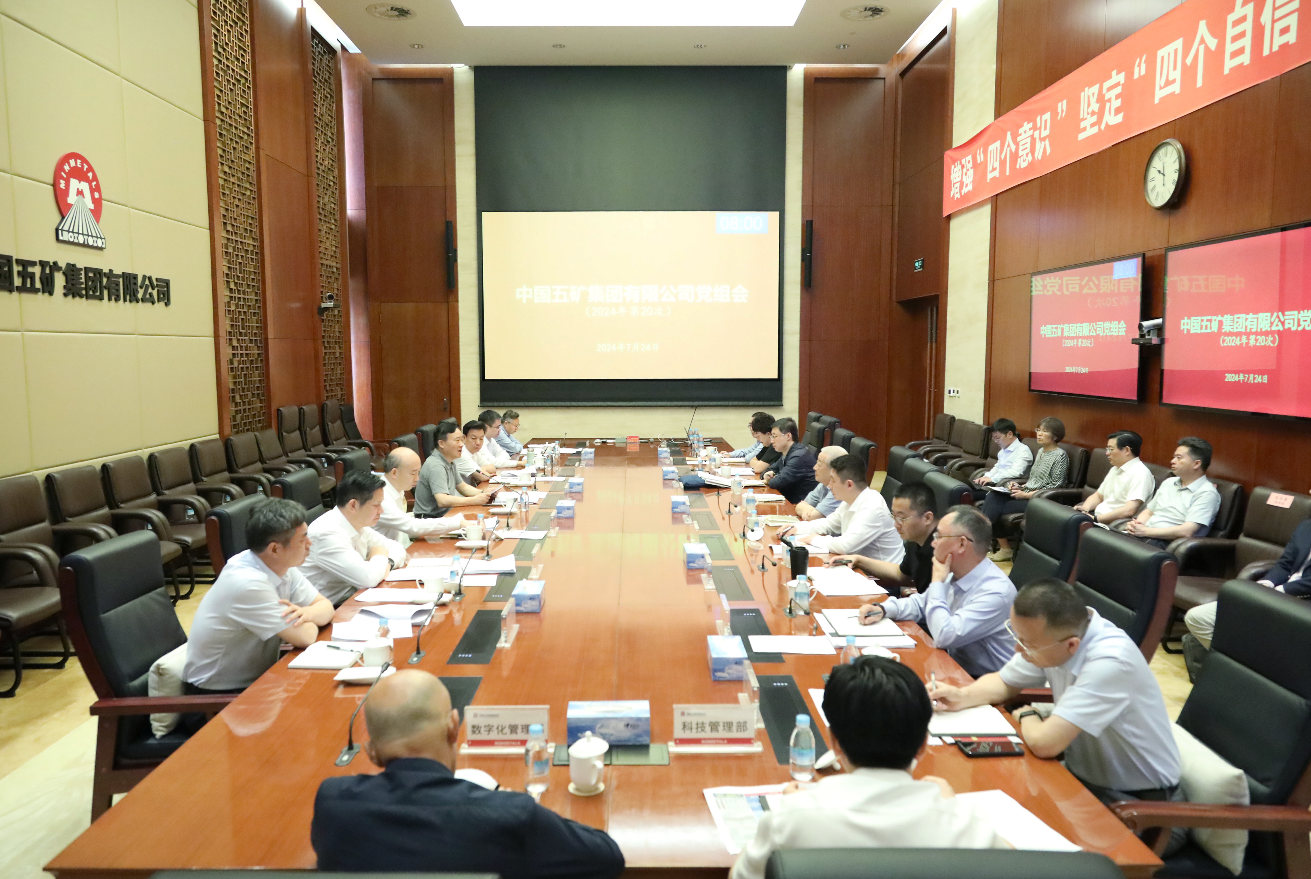 7月24日,中國五礦黨組召開會議傳達學習黨的二十屆三中全會精神。黨組書記、董事長翁祖亮主持會議并講話。黨組其他成員出席會議。